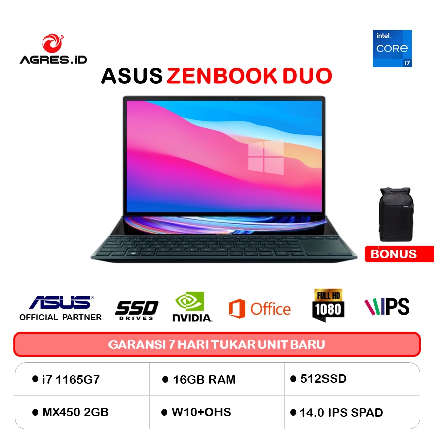 Jual Asus Zenbook Pro Duo Ux482eg Ips751 Touch I7 1165g7 Ram 16gb 512ssd Mx450 2gb W10 Ohs 14 0 Ips Screen Pad Indonesia Shopee Indonesia