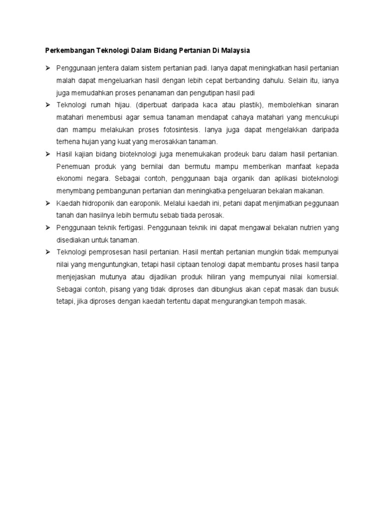 Perkembangan Teknologi Dalam Bidang Pertanian Di Malaysia Pdf